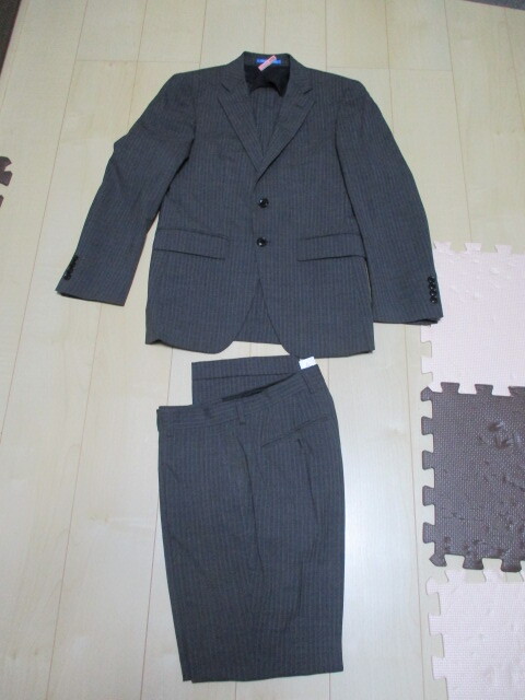 > 夏・春用!超激安・美品![ORIHICA オリヒカ]チャコールグレー×白 ストライプビジネスシングルスーツ[170-A5]2つボタン 新入社員ピッタリ