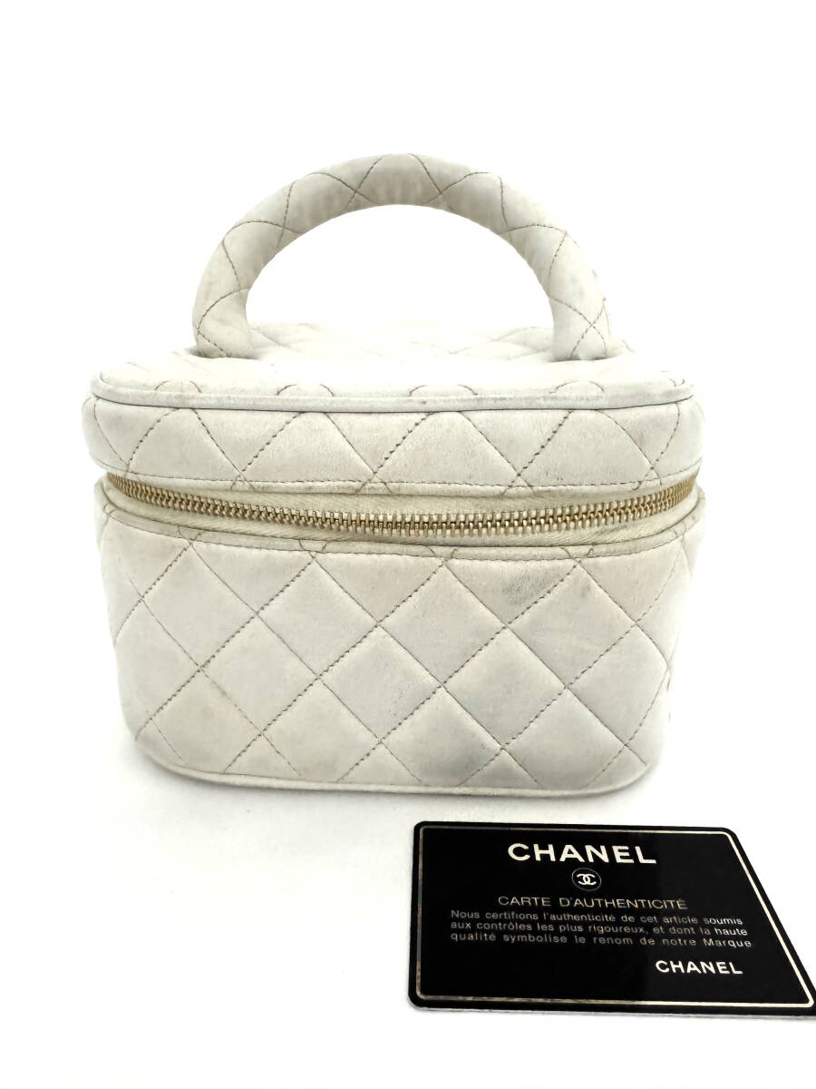- 7H0305【本物保証】シャネル バニティ ハンド バッグ マトラッセ レザー ホワイト ココマーク CHANEL