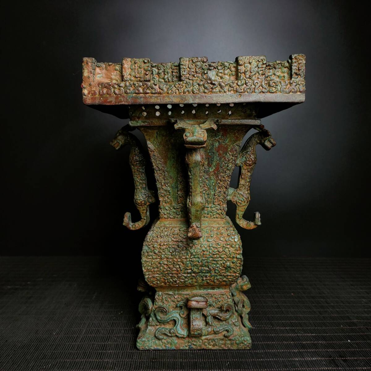 - 「早期收集 青銅器 古青銅彫 戦国風 細工方尊 獣紋 酒器 置物 擺件」時代物 古董品 骨董 旧家蔵出し 唐物 中国古玩 華夏品 古美術品