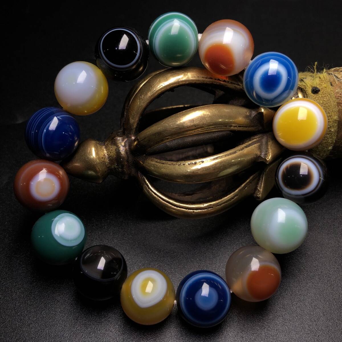- 西蔵天珠 古瑪瑙彫 天眼天珠手鏈 仏珠 数珠 念珠 奉納 腕輪 盒有 極細工 古賞物 古美味 東洋彫刻 時代物 骨董 中国古美術