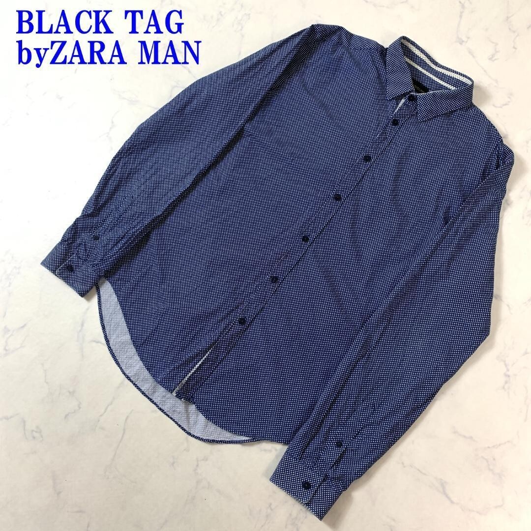 > ザラ メンズ 長袖シャツ ネイビー 青 BLACK TAG by ZARA MAN SLIM FITドット コットン系 L相当 C3740