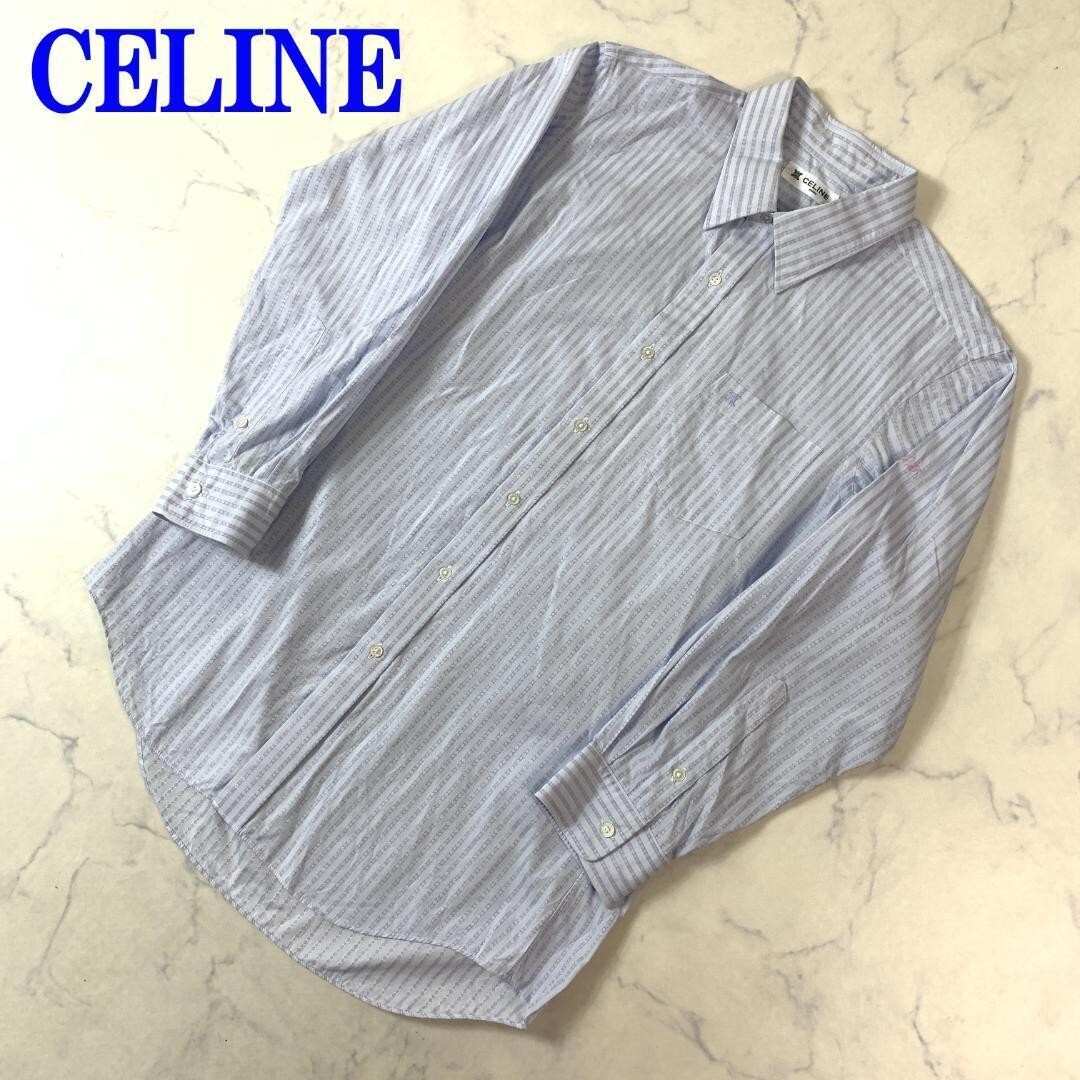 > セリーヌ 長袖シャツ ブルー 水色 ストライプCELINE PARIS コットン100% 綿100% L程度 C3871