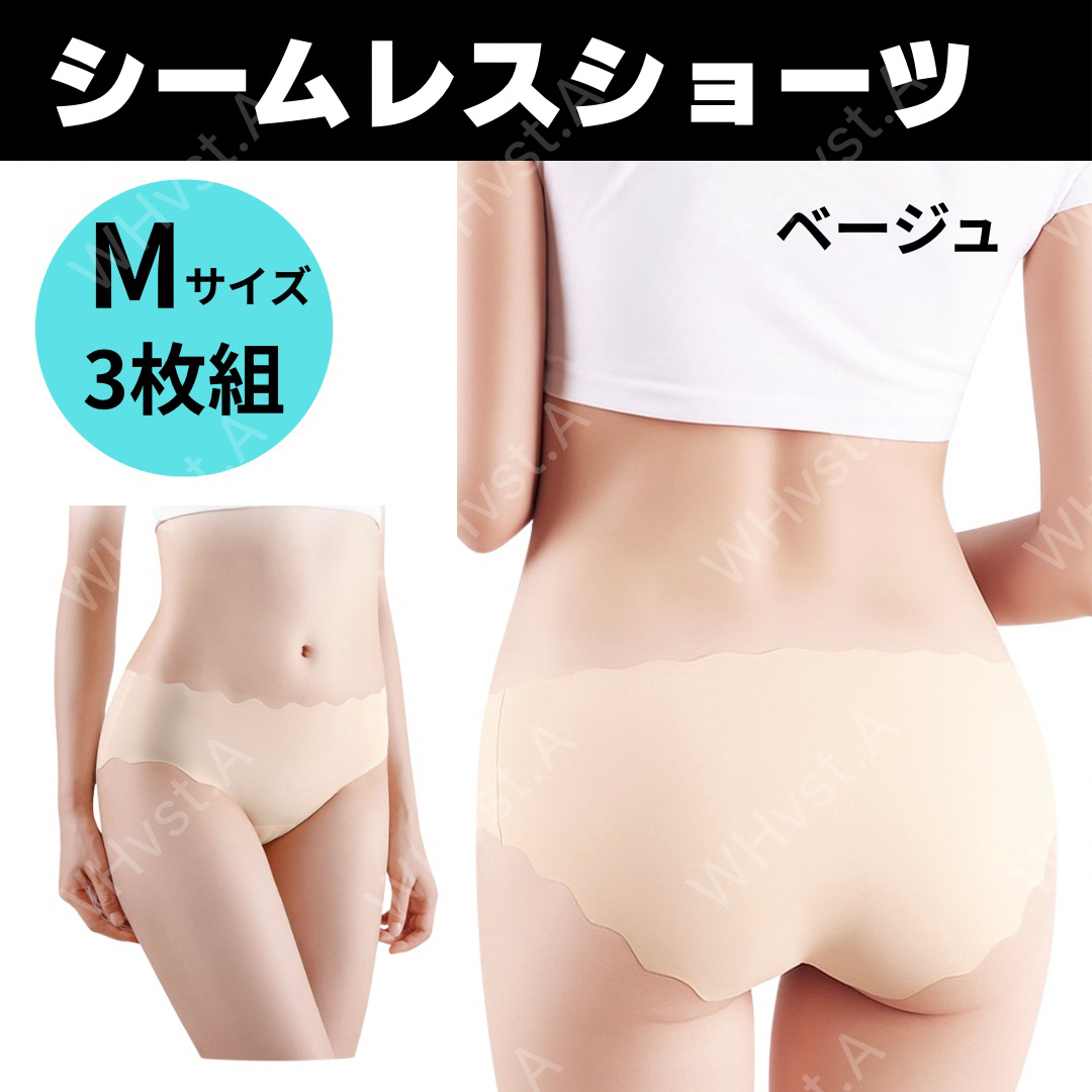 - 響かない シームレスショーツ 3枚組 M ベージュ 波型 シームレス ショーツ
