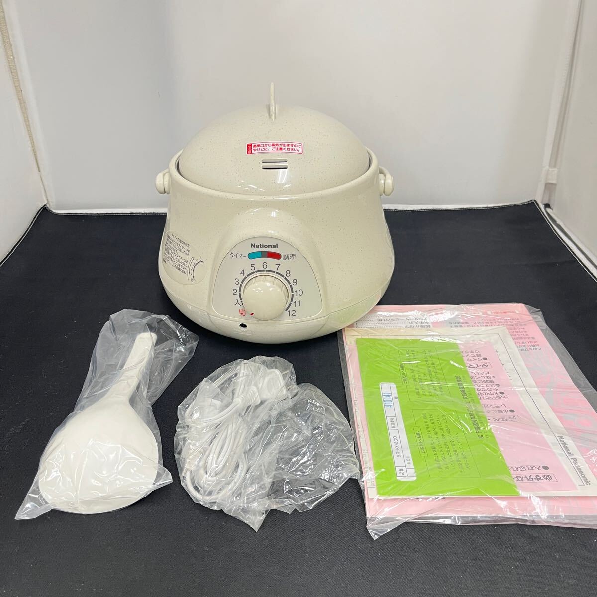 > 未使用 長期保管品 ナショナル 電気おかゆ鍋 0.2L炊き SR-K0200 ベージュ 動作品 電気鍋 (08047A)