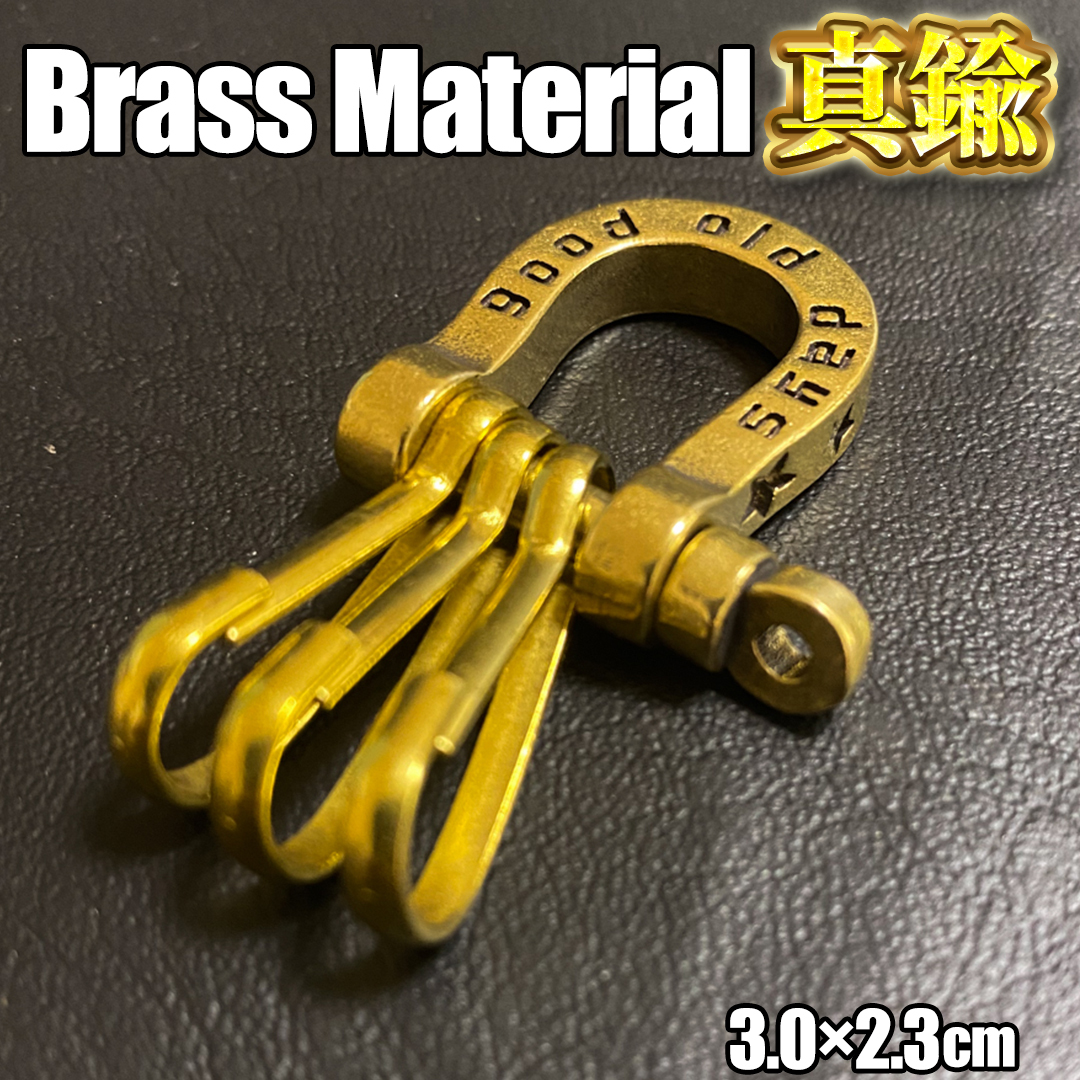 - ■新品/送料無料■ 真鍮 キーホルダー パーツ アクセサリー アンティーク風 馬蹄 シャックルパーツ 板カン4点 金ゴールド