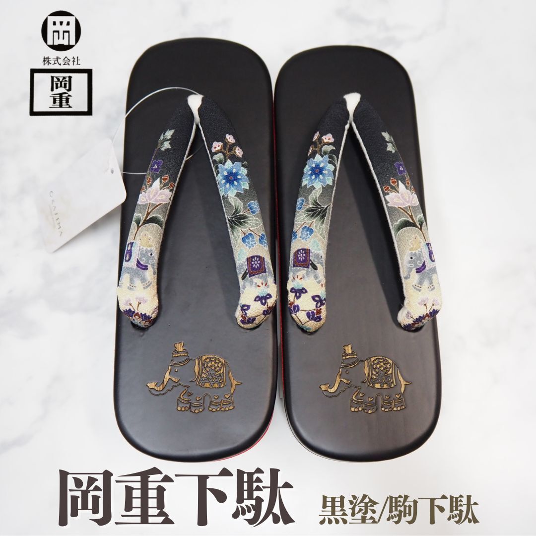 - 岡重 OKAJIMA 下駄 桐下駄 浴衣 駒下駄 二枚歯 黒塗 フリーサイズ 黒