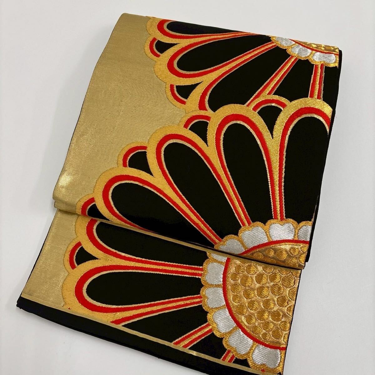 - 袋帯 本金糸 金彩 大柄の花 正絹 W-3480