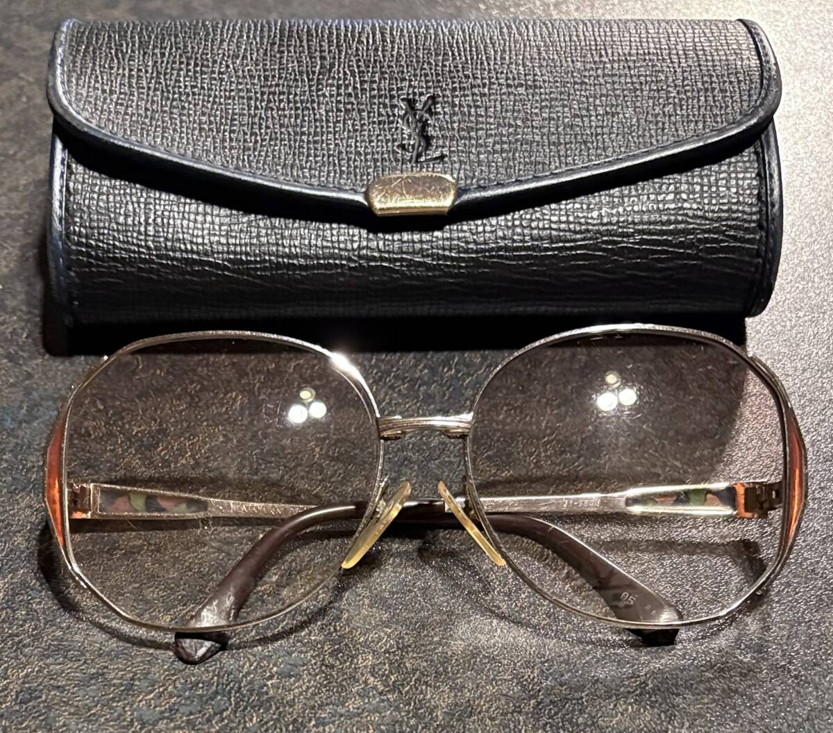 - 80sビンテージYVES SAINT LAURENTサングラス メタルフレーム茶ビッグ度無し元レンズ薄グラデーション80年代1980sオールド イヴサンローラン
