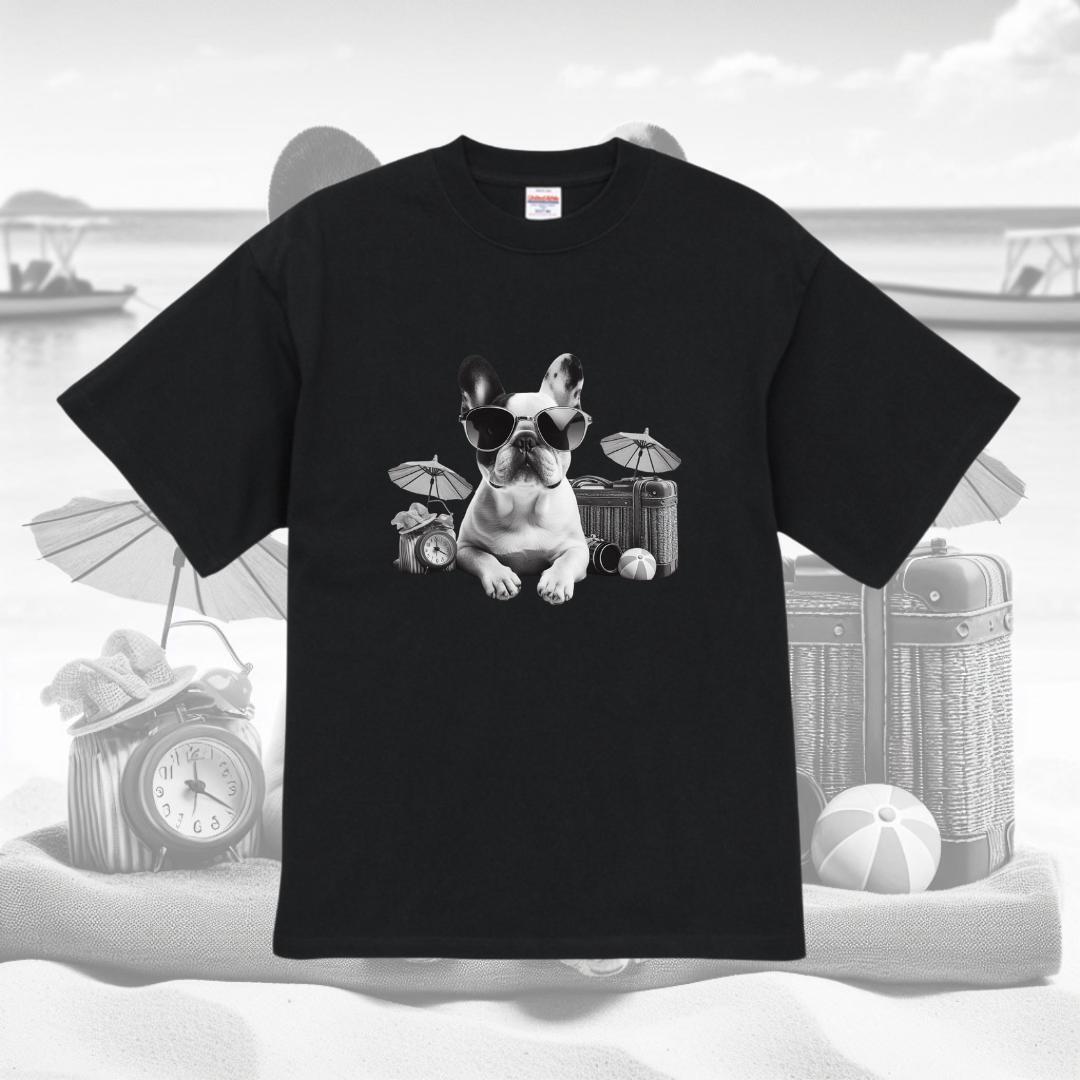 - United Athle オリジナルTシャツ 犬 モノクロ フレンチブルドッグS
