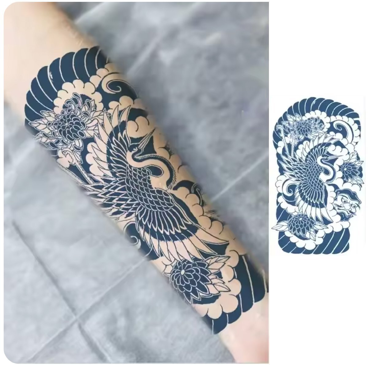 > 【タトゥーシール】★鶴 和柄 フェイクタトゥー 10cm×18cm【1枚】 腕 脚 刺青シール リアル和彫 防水 耐久性あり (鶴-01)