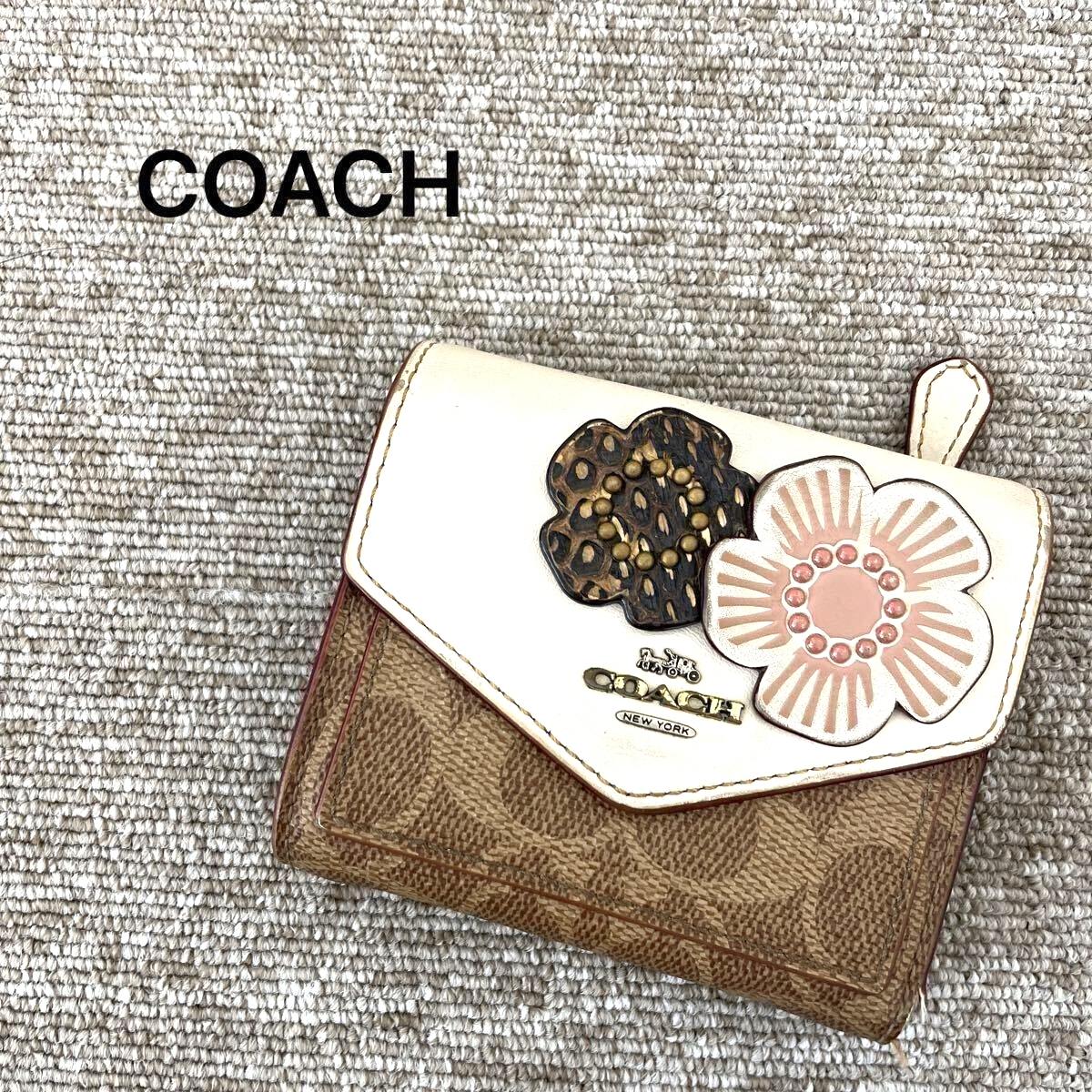 - 【565】 COACH コーチ 財布 三つ折り財布 シグネチャー キャンバス Signature Canvas ガードケース お花柄