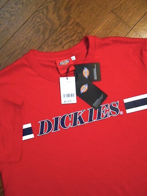 > Dickies・ディッキーズ☆きれいな赤xビッグロゴ♪半袖Tシャツ M 未使用品 定価 \4.000
