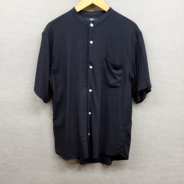 - H253 SHIPS Colors シップスカラーズ ノーカラー シャツ 半袖 レーヨン 日本製 シンプル 無地 羽織 胸ポケット ネイビー系 サイズ L