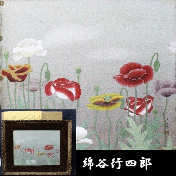 - 綿谷行四郎 「けしの花」 10号 日本画 岩彩 風景画 日本美術院院友 広島出 E7