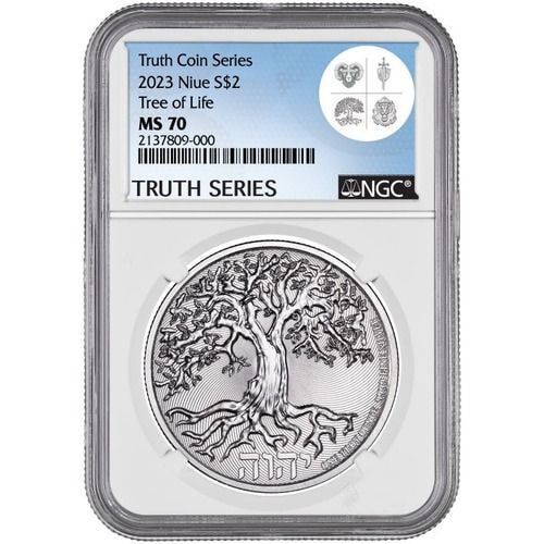 - [保証書・スラブ付き] 2023年 (新品) ニウエ「生命の木」純銀 1オンス 銀貨 NGC MS70