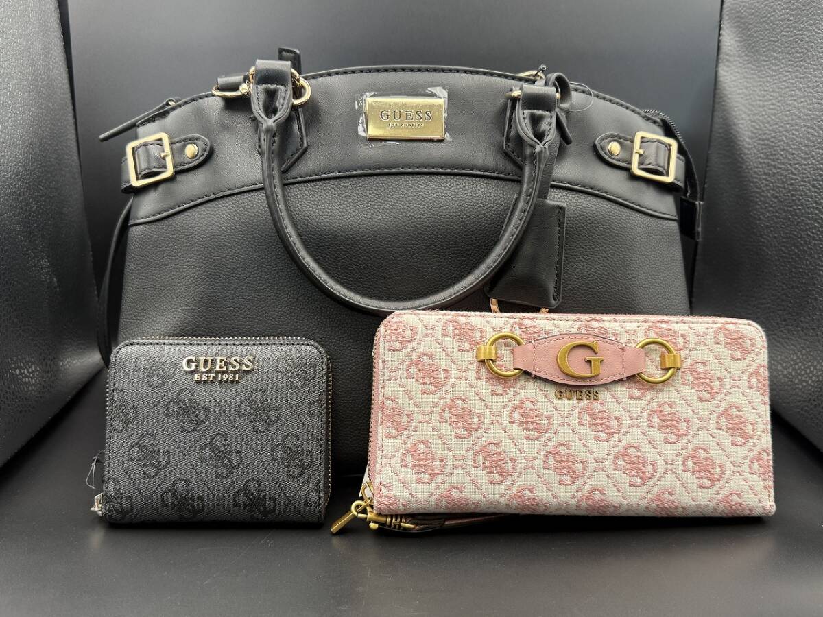 - (26084)【美品】 GUESS ゲス おまとめ トートバッグ 長財布 二つ折り財布 財布 ウォレット 3点セット ブラック ピンク 現状品