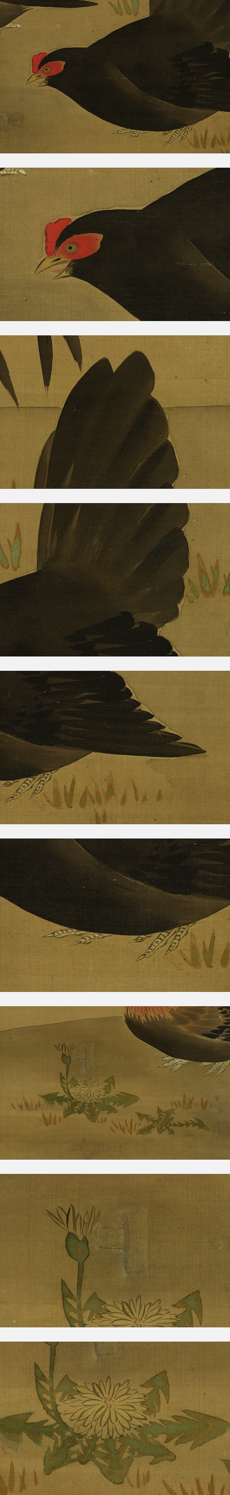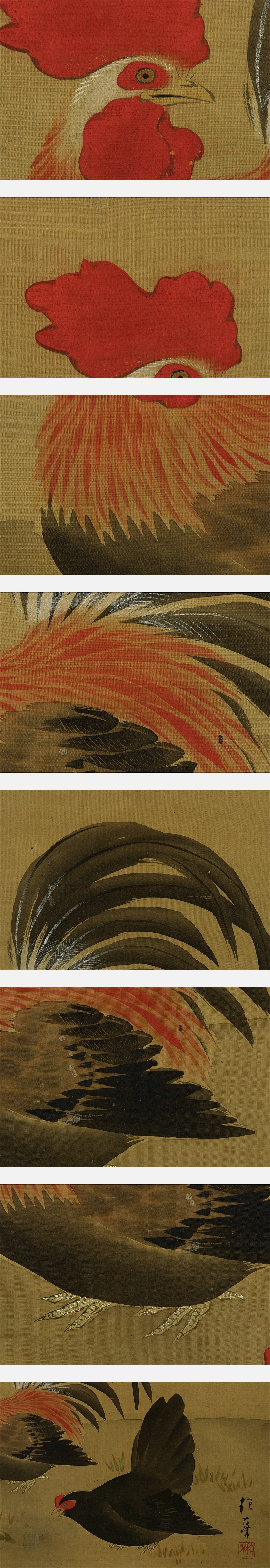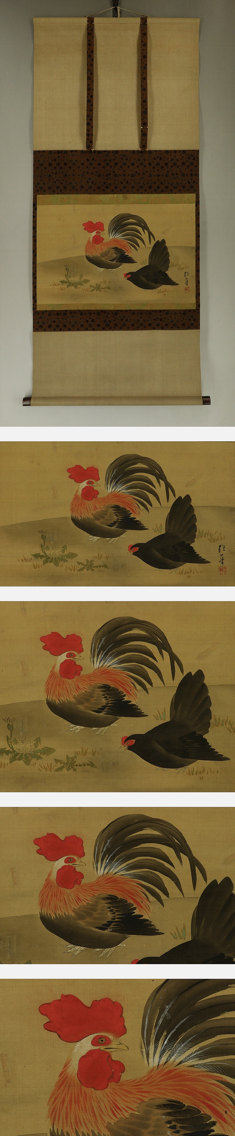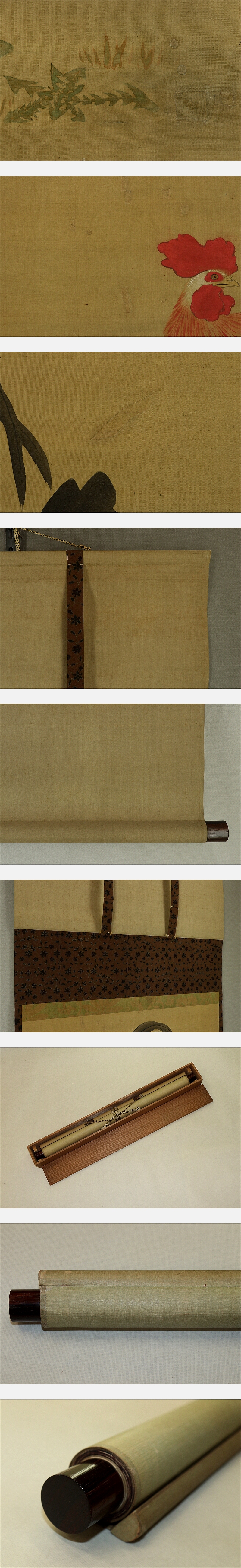 - 【模写】酒井抱一【鶏図】◆絹本◆合箱◆掛軸 r03114