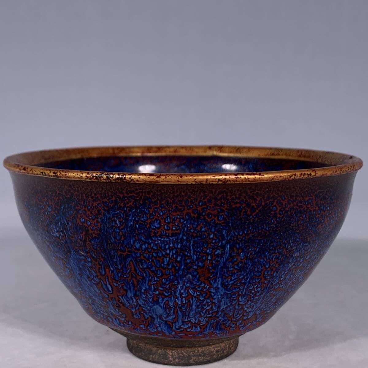 - 宋 古陶磁器 建窯 窯変 包口 藍釉 天目盞 盃 建盞 茶盞 極細工 時代物 東洋彫刻 古賞物 中国古玩 中国古美術 中国唐物