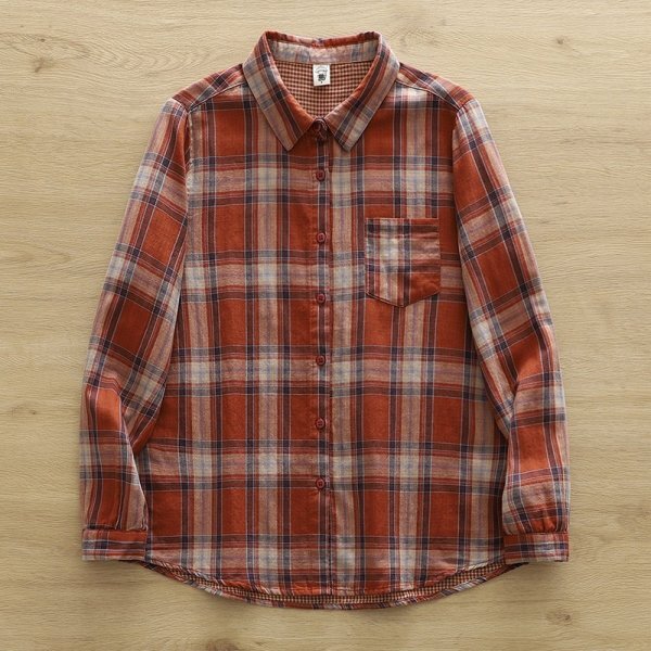 - c 2508 ダブルガーゼ フリーサイズ ワイシャツ チュニック トップス ナチュラル 綿100% 通気性肌触り抜群 サラサラ ゆったり チェック柄6