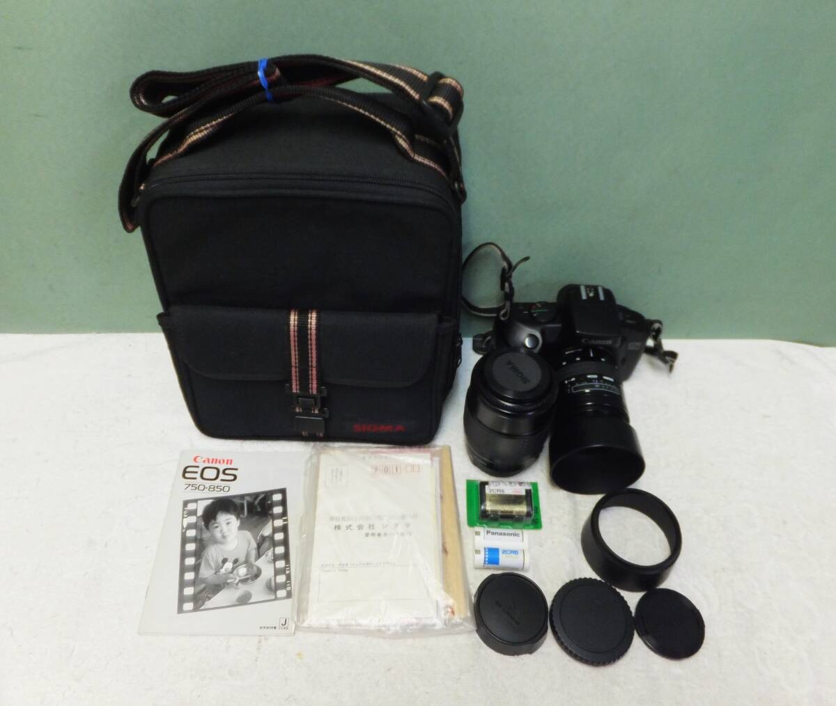 > Canon キヤノン EOS 750QD 一眼レフ フィルムカメラ SIGMA レンズ 28-70mm 70-210mm 説明書付き 中古