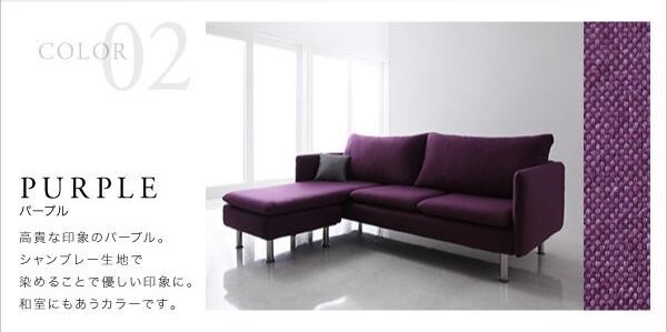> 新品未使用 レイアウト自由 モダンデザインカウチソファ クッション付き パープルファブリック