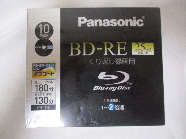 - G♪31 記録メディア Panasonic 録画用 BD-RE LM-BE25A10YA 25GB くり返し録画 10枚 日本製 未使用品 未開封品 検:パナソニック ブルーレイ