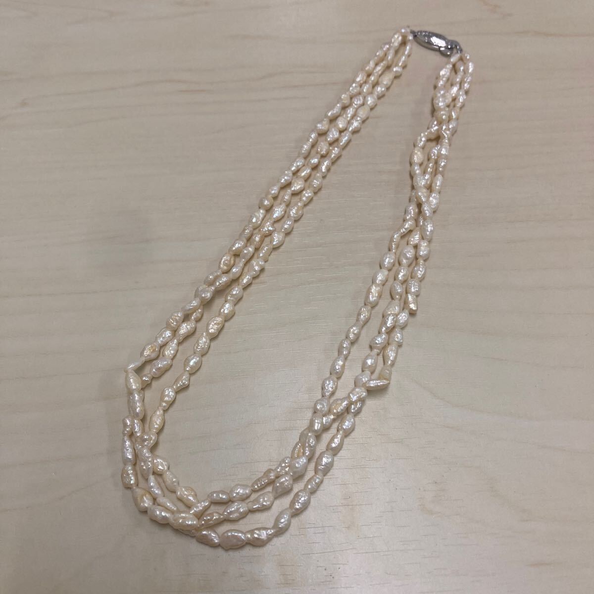 - da 本真珠ネックレス 3連ネックレス パール3連ネックレス GSILVER 40cm 21g