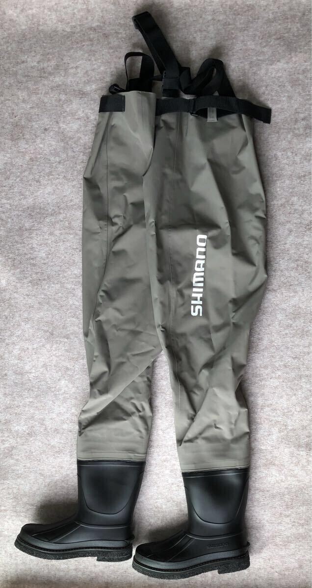 - 箱付き 美品 シマノ SHIMANO ハイパーウェーダー ウエストハイ カット 中丸 フェルトソール FF-055T LLサイズ スモークグレー ウェーダー
