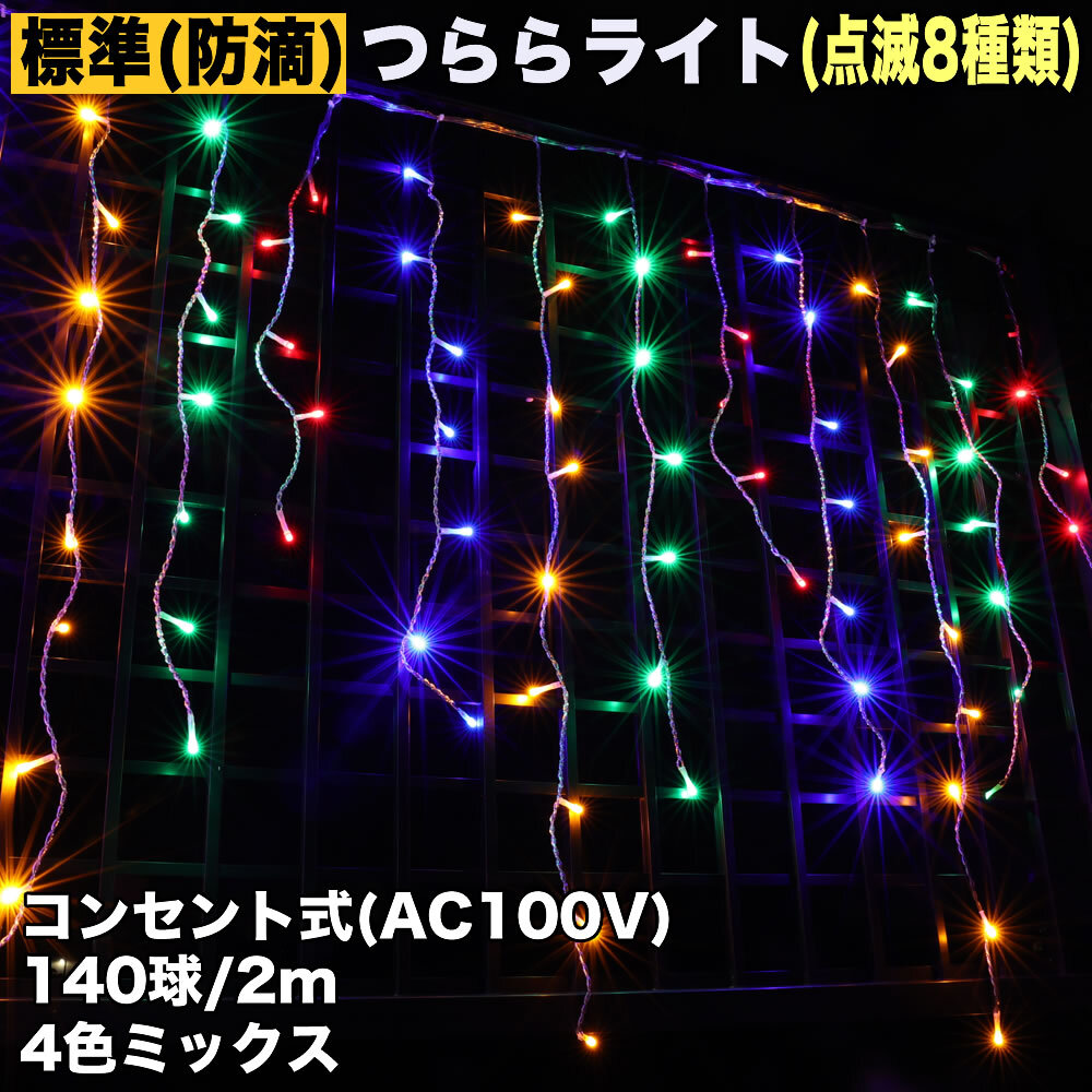 > クリスマス 防滴 イルミネーション つらら ライト 電飾 LED 2m 140球 4色 ミックス 8種類点滅 Aコントローラセット