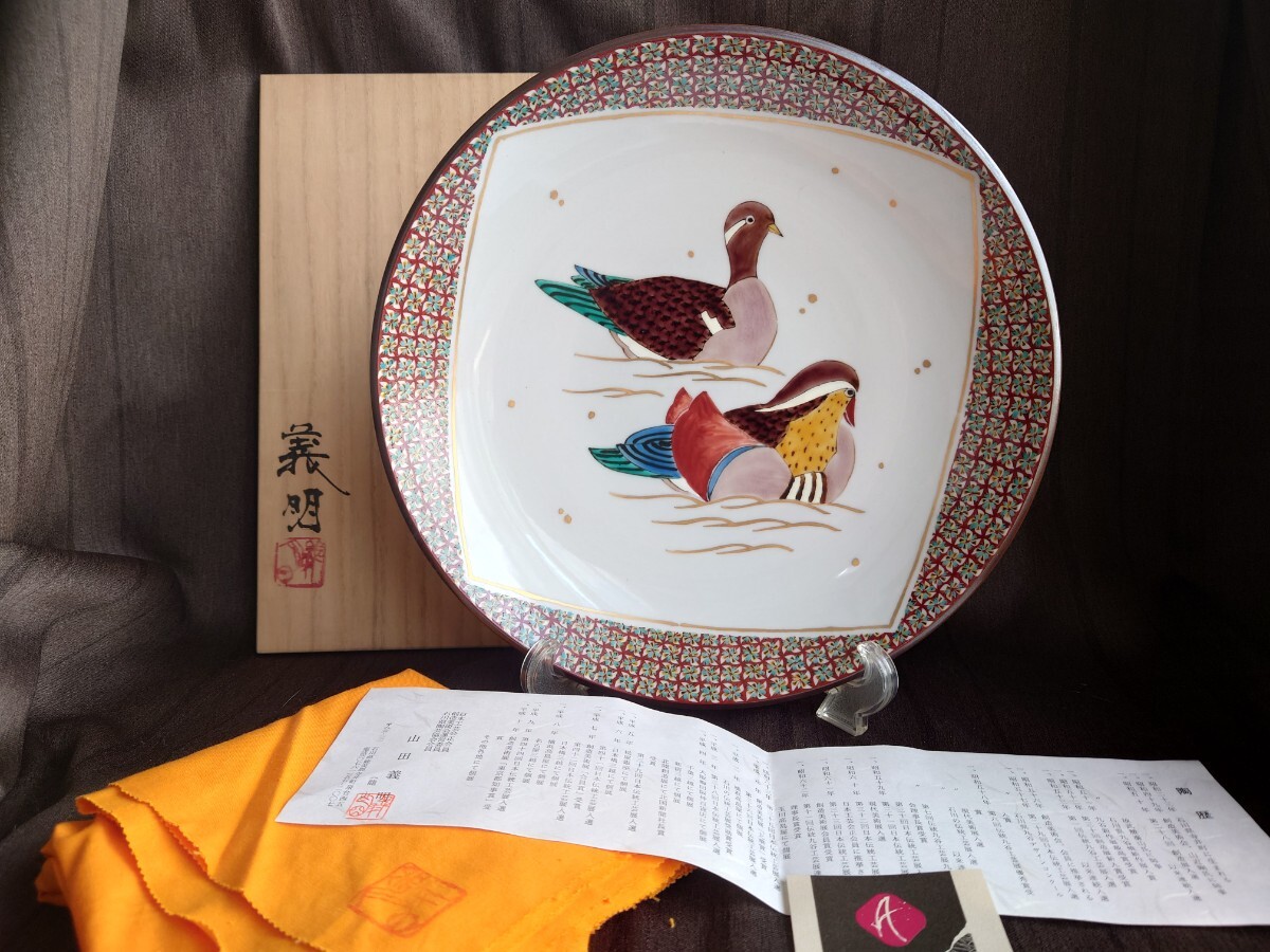 - 九谷 山田義明 飾皿 おしどり文 名工 人気作家