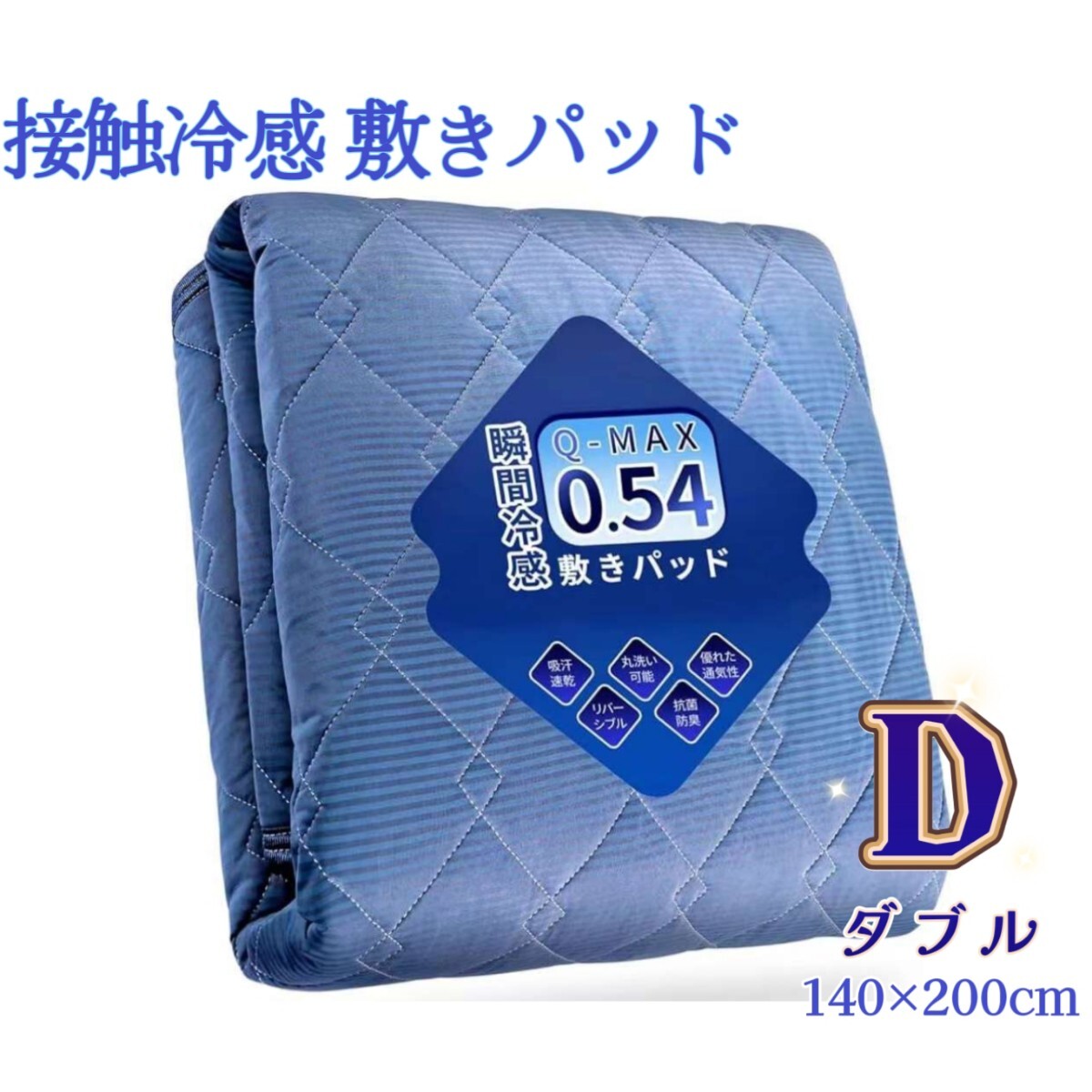 - 冷感 敷きパッド 夏用 ひんやり 極涼 ベッドパッド クールタッチ 接触冷感 サラッと リバーシブル 吸湿速乾 ダブル・140×200㎝ 紺色