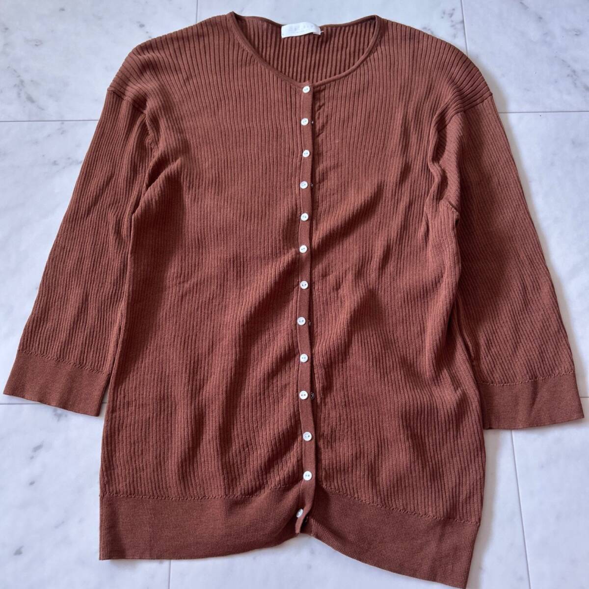 - Ballsey ボールジィ マーセライズドコットンリブ クルーネックカーディガン ブラウン 美品 Mサイズ