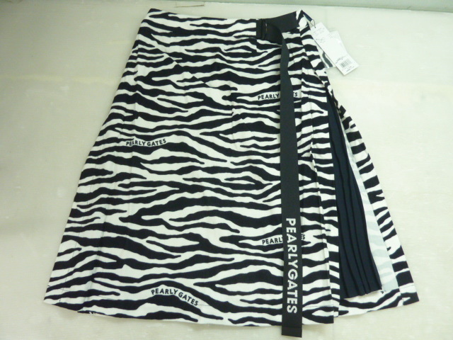 - r197 新品タグ付き PEARLY GATES パーリーゲイツ レディース スカート 両サイドスリット プリーツ裏地付き ゼブラ柄 サイズ0