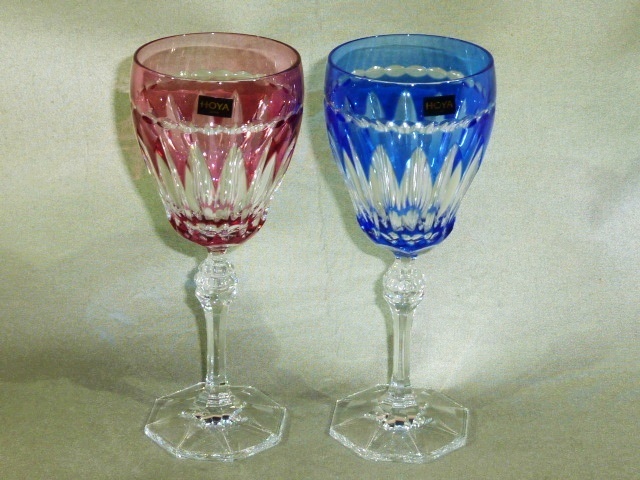 - HOYA クリスタル 色被せ・ワイングラス2客 切子グラス