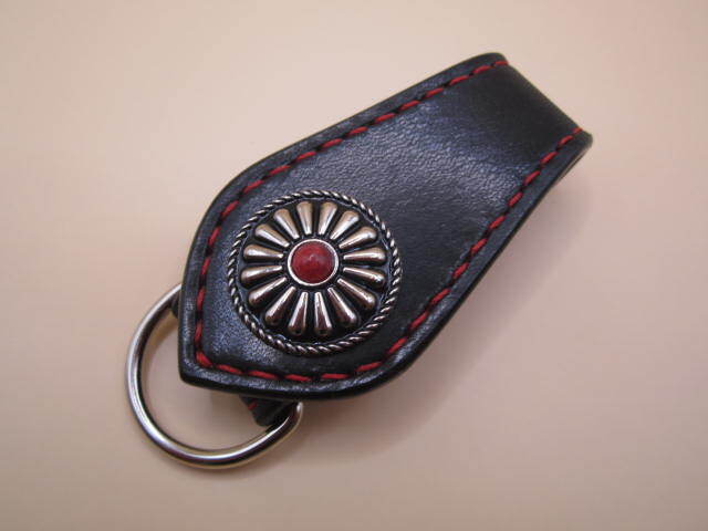 > キーホルダー キーリング「黒 赤 サドルレザー」ベルトループ ウエスタン バイカー ロッカー ハーレー ライダー シンプル ハンドメイド