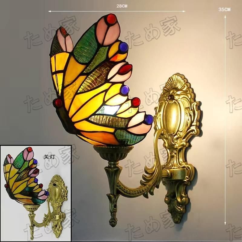 > 05 チョウチョウ ステンドグラスランプ ステンドグラス ペンダントライト壁掛け照明ガラス工芸品 豪華 単灯 電球つき