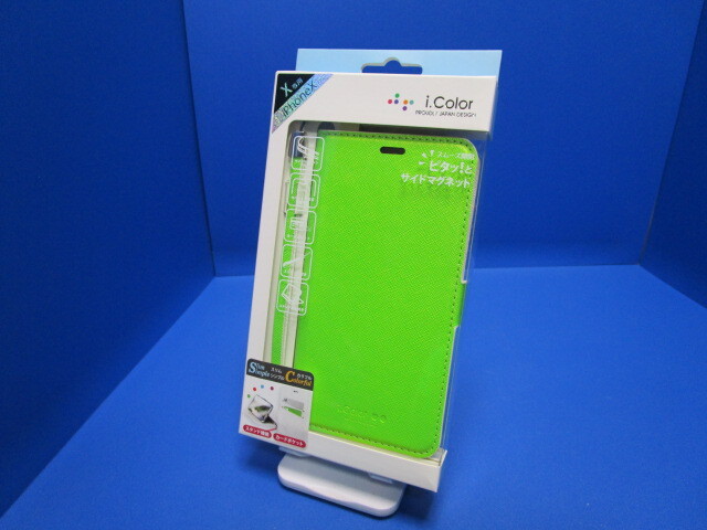 > NATURAL design iPhoneX iPhoneXs 手帳型 ケース iColor グリーン PUレザー カードポケット付 ハンドストラップ付 iP8-iC01 ★