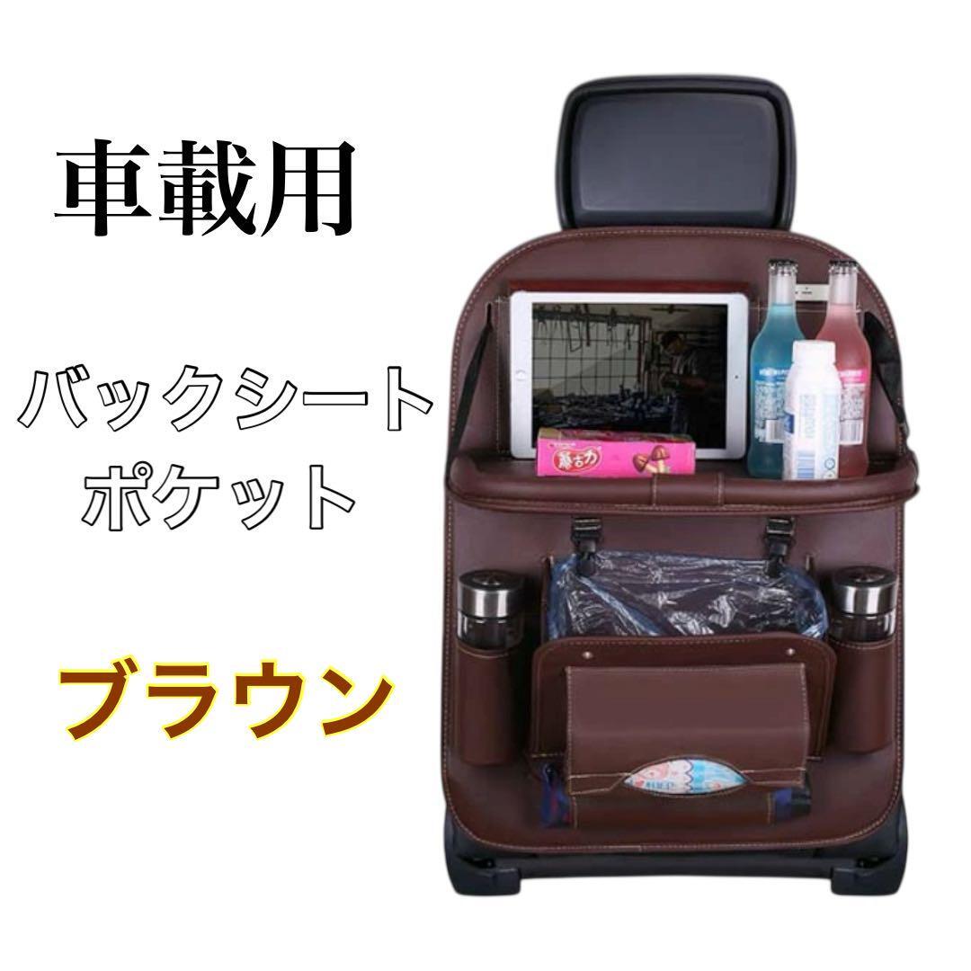 - 車載用 バックシートポケット ブラウン テーブル付 ゴミ箱付 防水 後部座席用