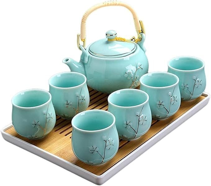 - 茶器セット 陶器 ティーセット 8点セット 和風 急須 クラシック磁器茶具 湯呑み 茶托 茶器セット ティーポット 土瓶 茶こし付 茶碗 茶器揃