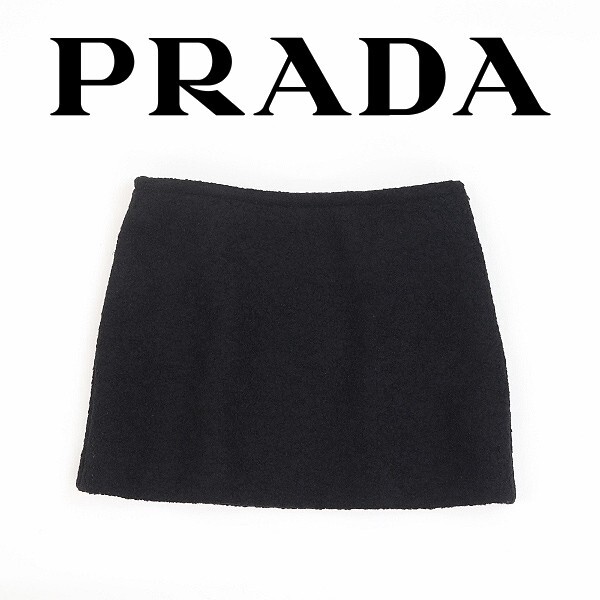 > 【FA600】美品 国内正規品◆PRADA プラダ モヘヤ混 ウール ブークレ ミニ スカート 黒 ブラック 42
