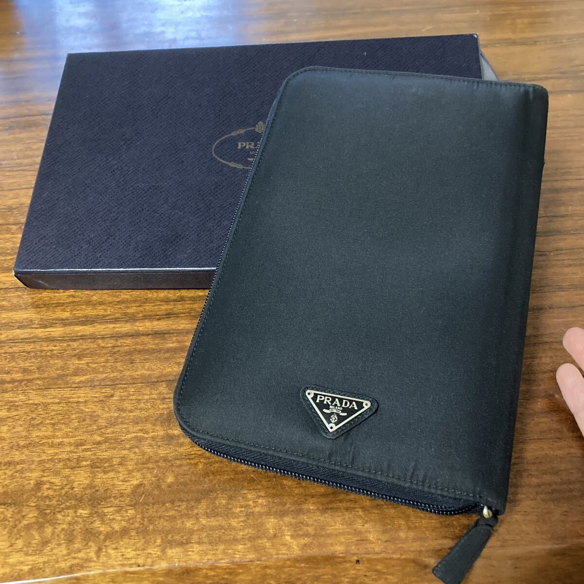 - プラダ レザー PRADA ブラック 財布 ラウンドファスナー ウォレット 長財布 領収書、通帳、母子手帳 経費レシート タブレットケース