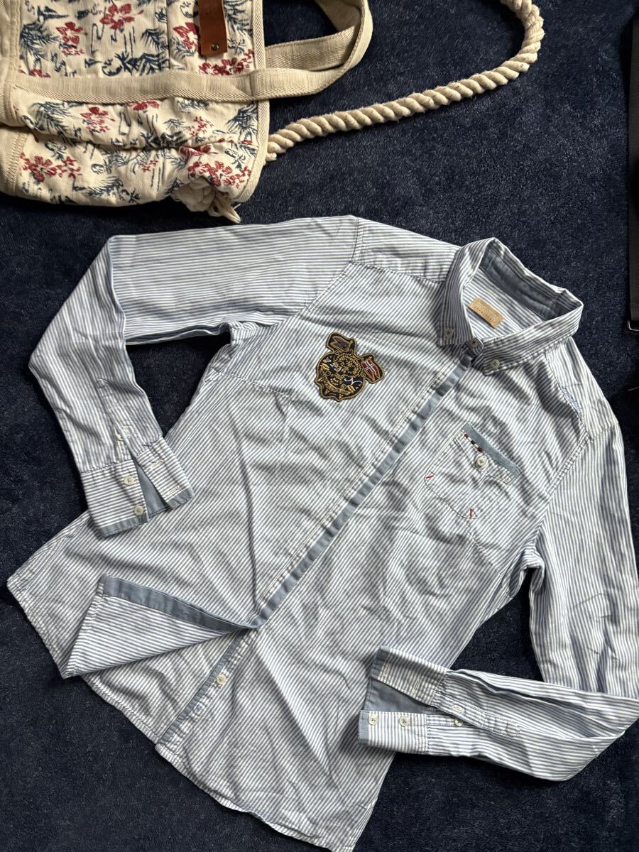 > 超美品 定価28,980円 NAPAPIJRI ナパピリ 短襟 ボタンダウン オックスフォードシャツ ストライプ レディース 長袖シャツ sizeS 正規販売