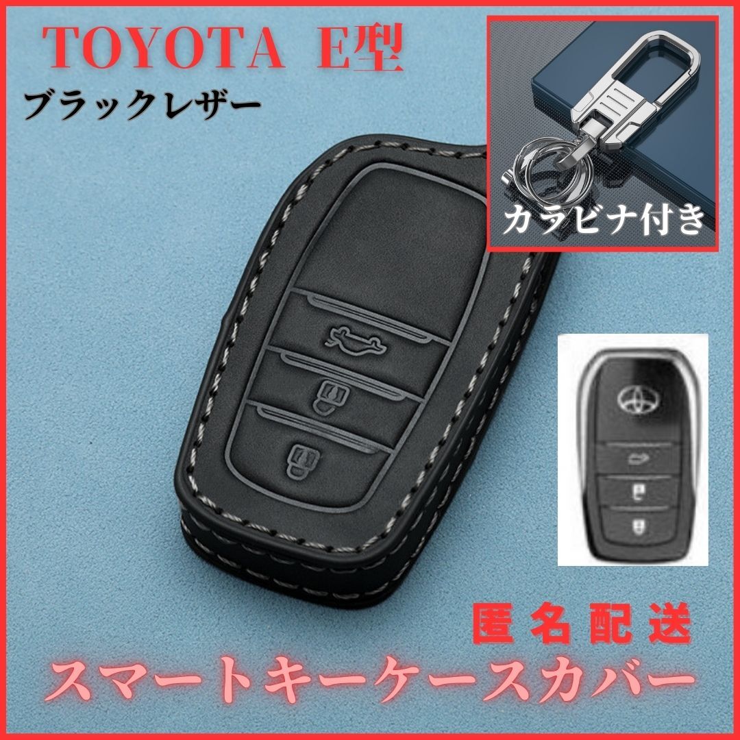 > キーケースカバー ハリアー80 プリウス60 ランドクルーザー200などトヨタE型 3ボタン スマートキーケース レザー 本革 牛革 黒カラビナ付き