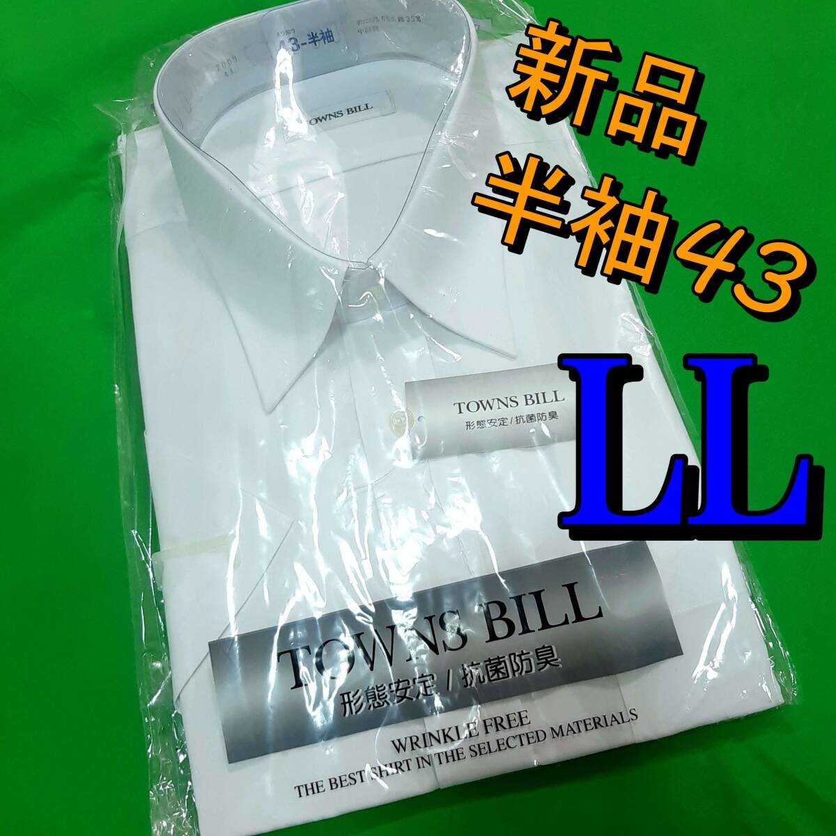 > J7新品★メンズ LL 首回り43★抗菌・防臭・形態安定加工★半袖フォーマル Yシャツ ドレスシャツ ビジネス ホワイト白色 無地定番 冠婚葬祭