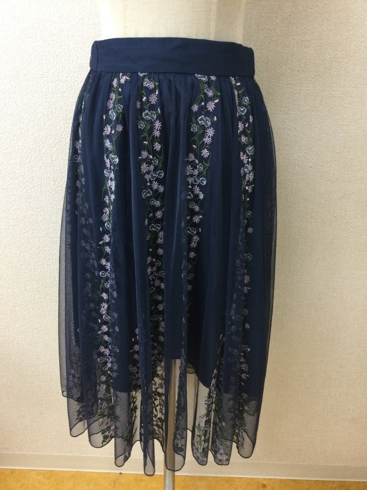 - ジルスチュアート ダークブルーに小花刺繍 チュールスカート ウエストゴム サイズFR