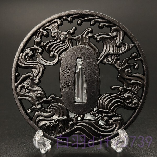 - SY39 日本刀装具 刀鍔 海波図 合金製 現代品 つば ツバ 刀剣美術 重さ約119G 厚さ約6mm