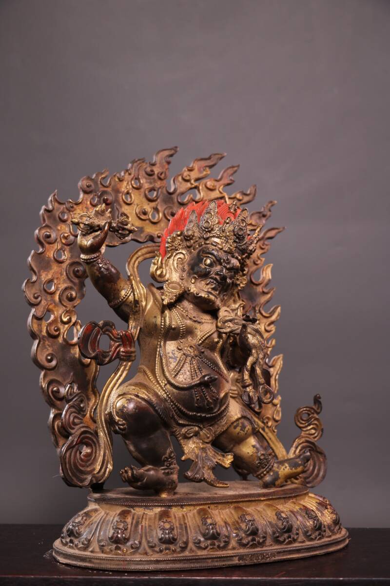 > 【超珍館蔵】銅製 泥金 朱砂 大黑天財神像 仏像 宗教 仏教古美術 供養品 古賞物 古董品 古美術品 時代物 旧家蔵出 稀少珍蔵品