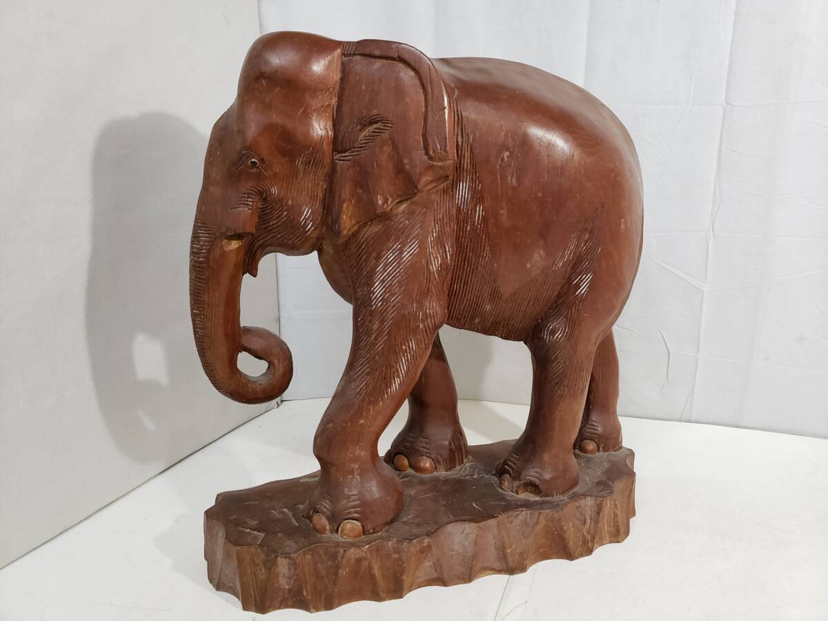 - 木彫り象 置物/ゾウ/ぞう/オブジェ/木製/縁起物/アジアン雑貨/エスニック雑貨/飾り物/玄関飾り/約24×51×53cm/重量約16kg/16-RMJ54