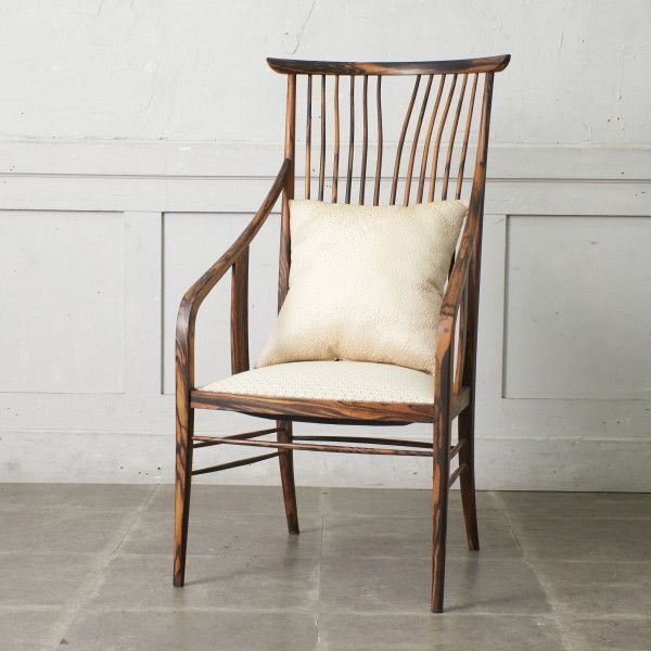 > IZ83558F★張替済 徳永家具工房 アームチェア 黒柿 無垢材 クッション 付 ダイニングチェア イージーチェア 椅子 TOKUNAGA 皇室御用達 銘木