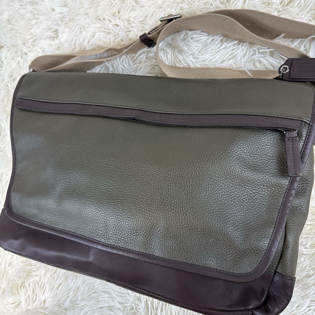 - COACH コーチ メッセンジャーバッグ ショルダー カーキ系 70924 斜め掛け